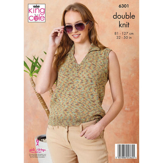 Ladies Round and V Neck Tanks knitted in Homespun Prism Aran King Cole Pattern 6309