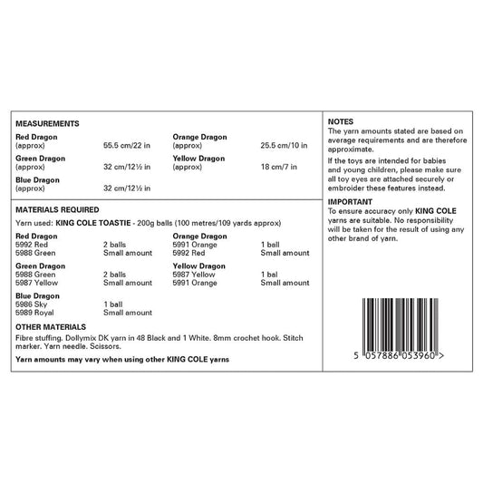 Dragons crocheted in Toastie King Cole Pattern 9204
