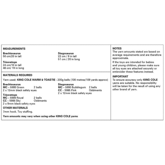 Dinosaurs crocheted in Toastie King Cole Pattern 9222