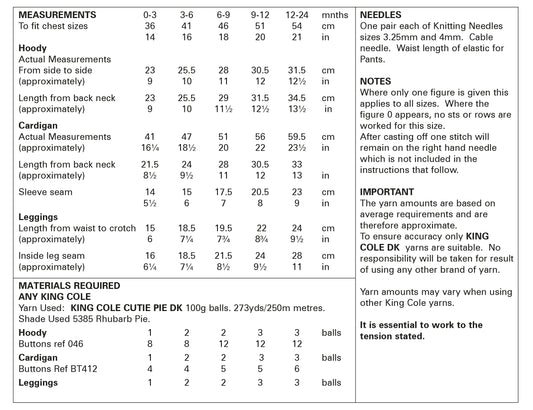 Hoody, Cardigan & Leggings Knitted in Cutie Pie DK 6030