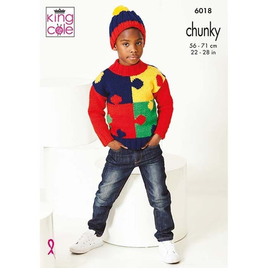 Jigsaw Sweaters Knitted in Big Value Chunky King Cole Pattern 6018