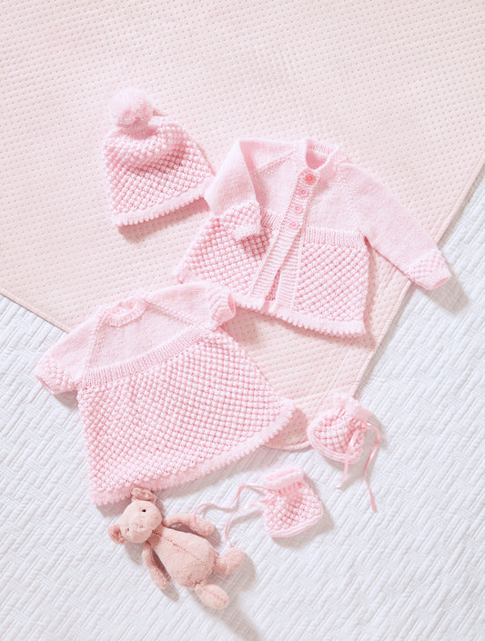 King Cole Matinee Coat, Angel Top, Hat & Bootees Knitted in Cherished 4Ply Pattern 5982