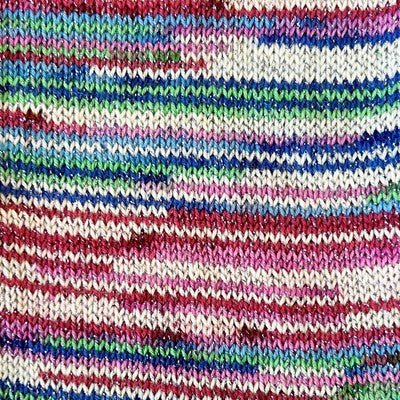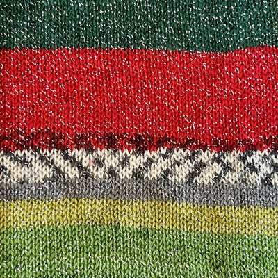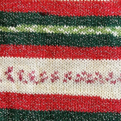 A dazzling Christmas yarn that showcases shades from traditional reds and greens to frosty blues and pinks.