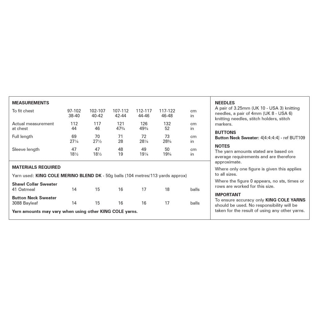 Hollywood Collection: Sweaters knitted in Merino Blend DK King Cole Pattern 6372
