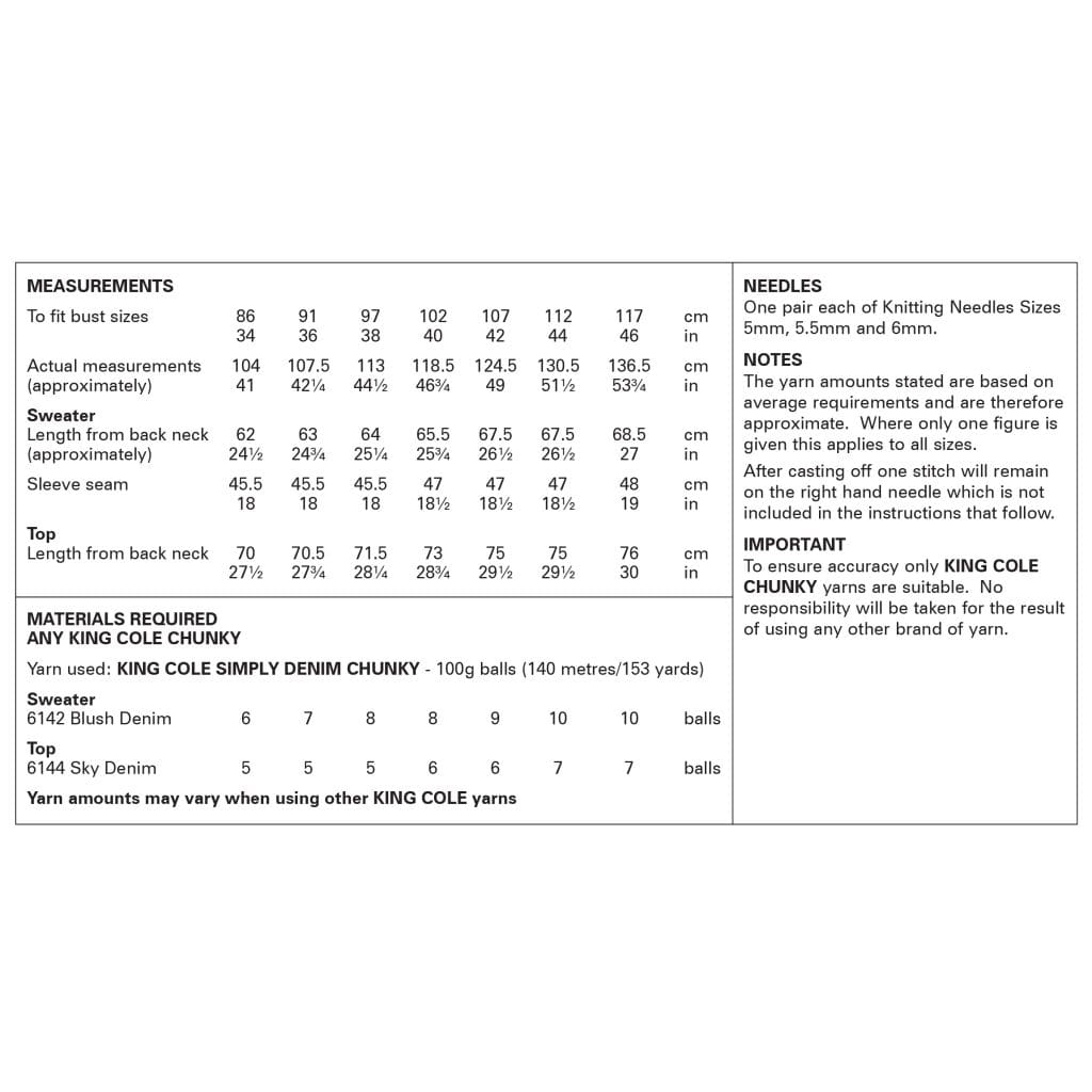 V Neck Sweater and Top knitted in Simply Denim Chunky King Cole Pattern 6379