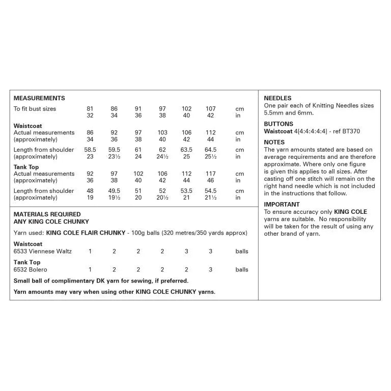 Waistcoat and Tank Top knitted in Flair Chunky King Cole Pattern 6382